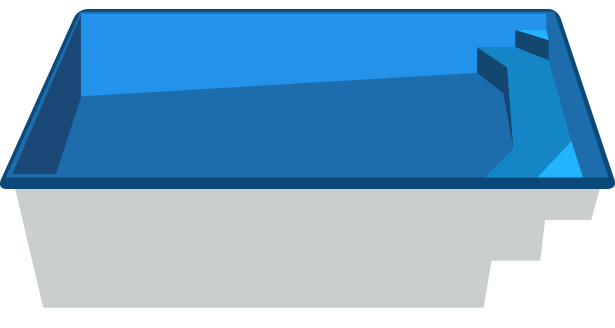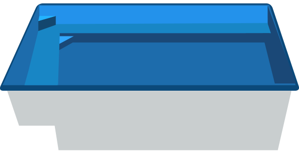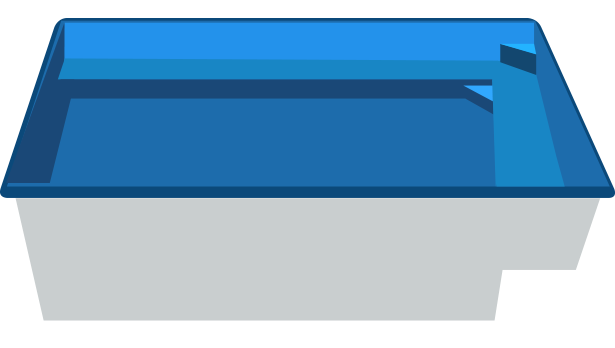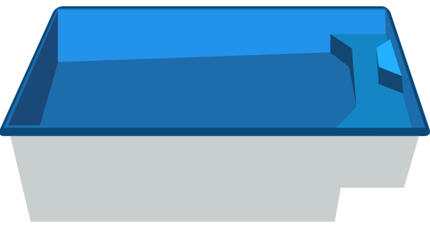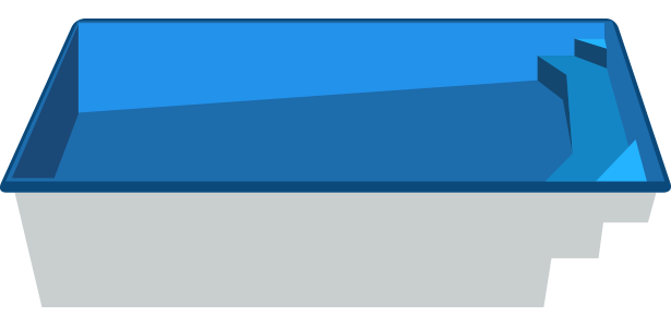 Squarer Mid sized pool with sloping bottom, the best of both worlds for space & value.