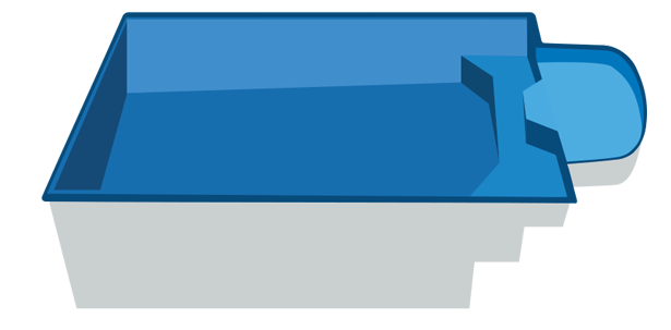 Elegant pool shape with sloping bottom perfect for designer spaces.